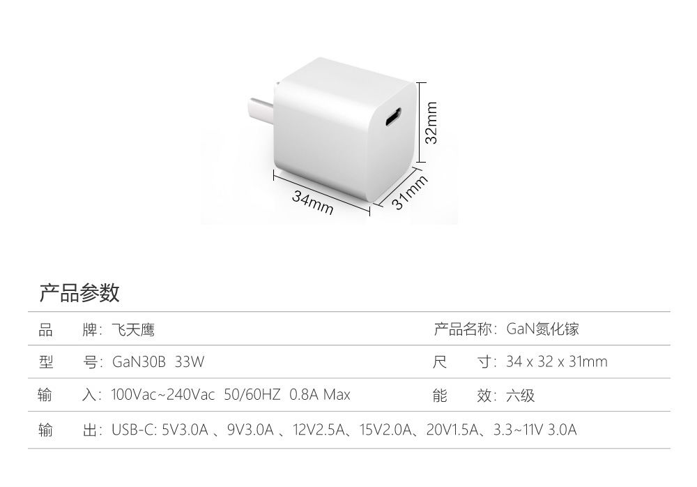 支持協議:PPS/PD3.0/PD2.0/QC3.0/2.0/FCP/AFC/Apple 2.4A