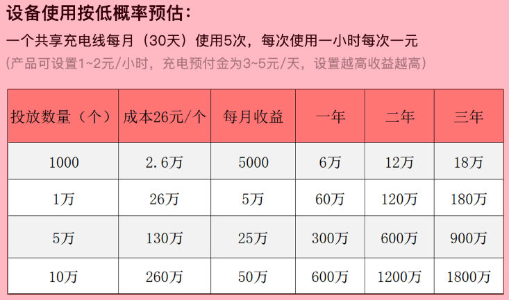 2. 利潤空間大:充電線的毛利潤達到95%以上,充電線幾個便宜,適合大面積鋪設,一次投入,長期收租。