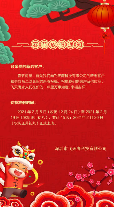 飛天鷹春節放假時間: