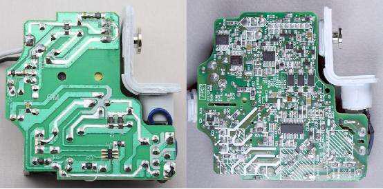 拆開以后你會發現正品充電器里面元器件多,料很足,而山寨充電器由于少了很多東西,則顯得有點空。正品充電器里面有圍起保護電路,灌膠,提高散熱性和絕緣性,安裝散熱片。而山寨充電器則沒有這些保護措施。因為沒有做電路保護設計,山寨充電器元器件功率較小,電路板較薄,沒有灌膠。
